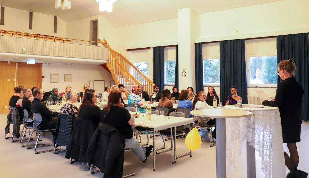 Idag var det examen för en klass undersköterskor som studerat på Storumans Lärcentrum i cirka två års tid. Examen hölls i en för dagen festligt utsmyckad aula med tal, festklädsel för de som ville och lunch med smörgåstårta och fika.